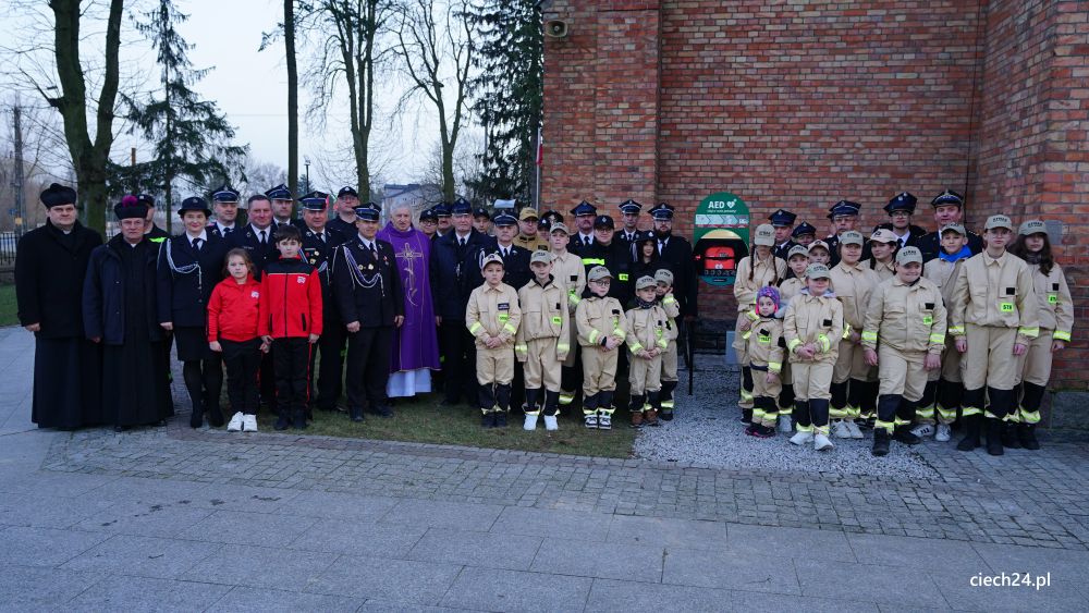Po zakończeniu uroczystości przed kościołem zaprezentowano mieszkańcom działanie defibrylatora. Pokaz poprowadził druh Rafał Fijałkowski z OSP Sońsk, który podkreślał, jak ważne jest upowszechnianie dostępu do tego typu urządzeń.