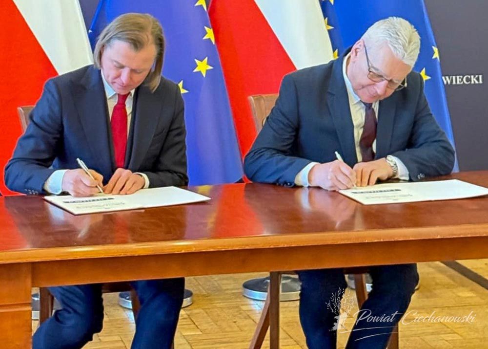 Umowa została podpisana przez Starostów oraz opatrzona kontrasygnatą Skarbnika Powiatu Ciechanowskiego – Ewę Wójcik, co formalnie potwierdza zabezpieczenie środków na realizację zadania.